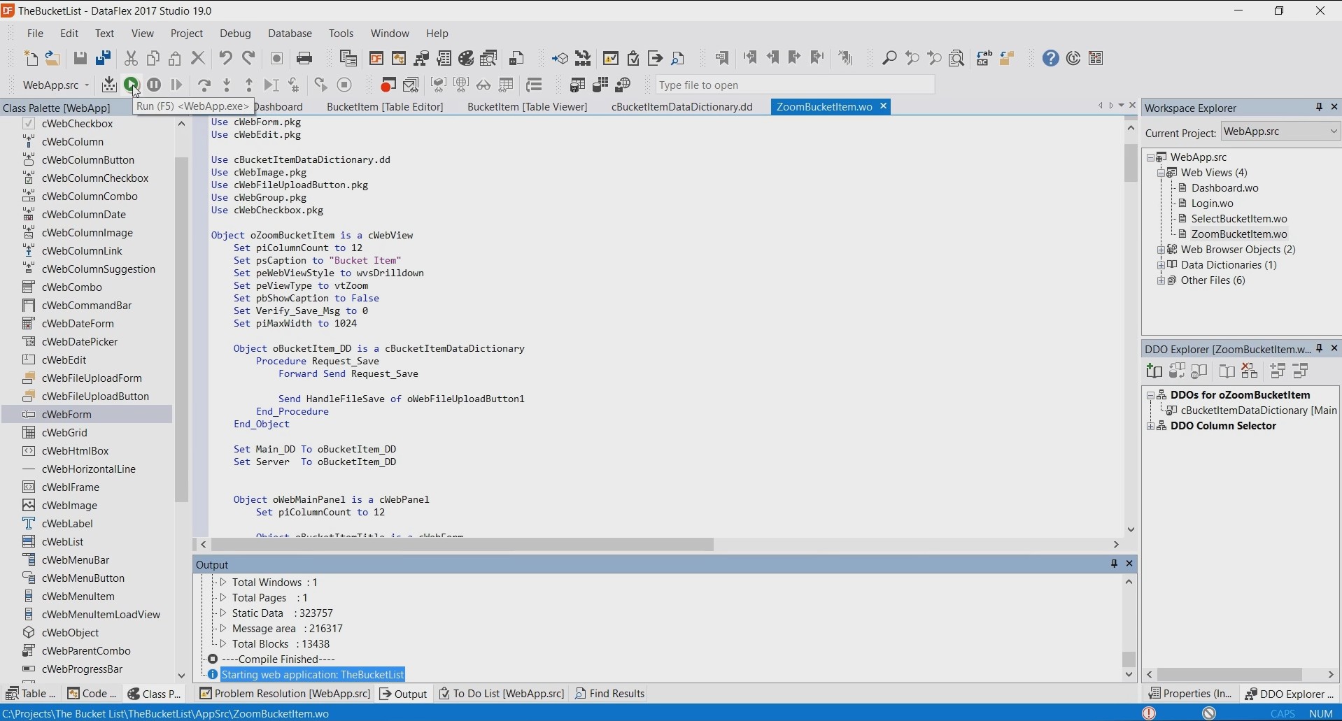 First close the designer and compile the application by pressing the ‘Compile Project’ Button.