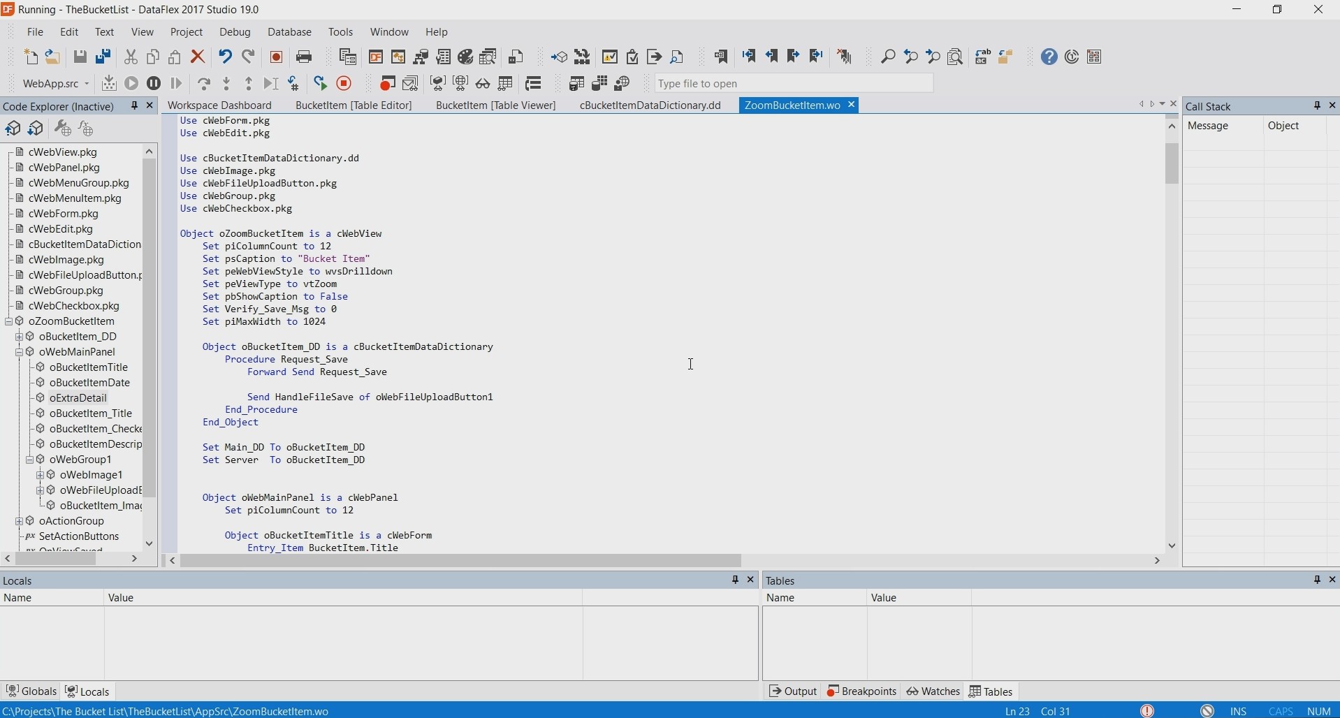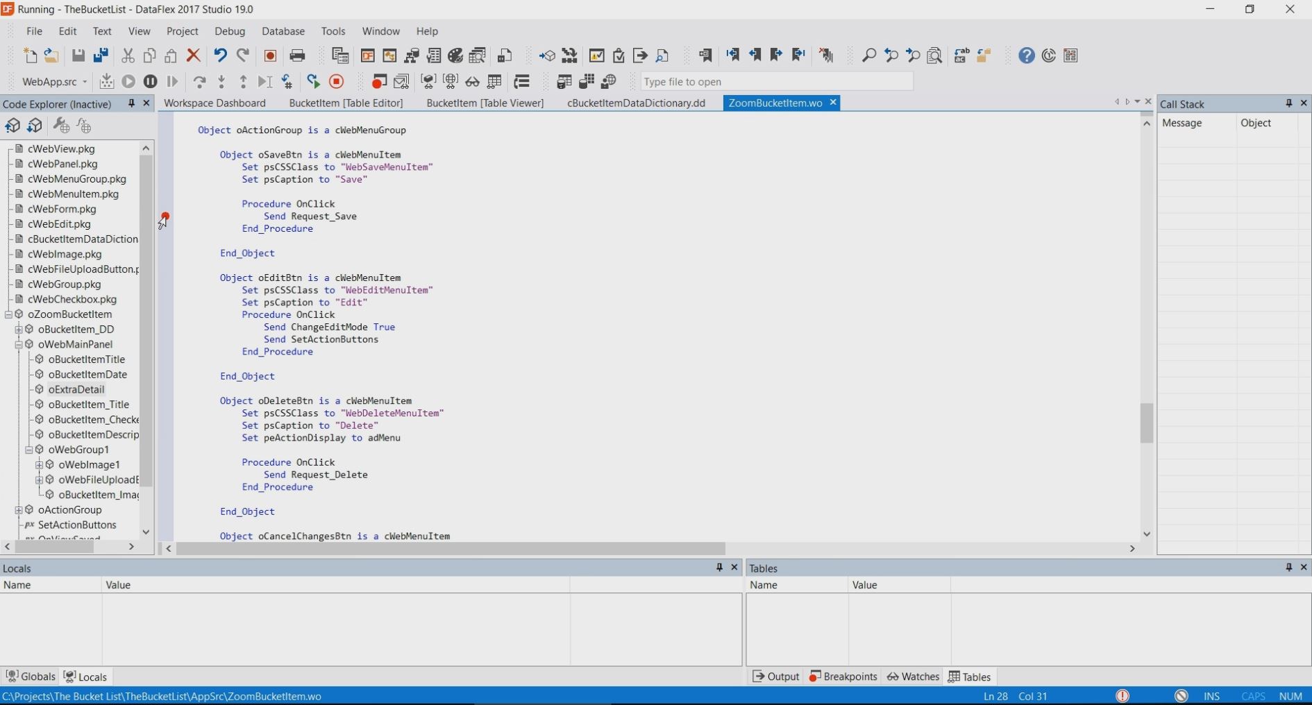 For example ‘Call Stack’ shows us where it came from, ‘Locals’ shows us the variables that are defined within the function and ‘Tables’ shows the different tables and current values.