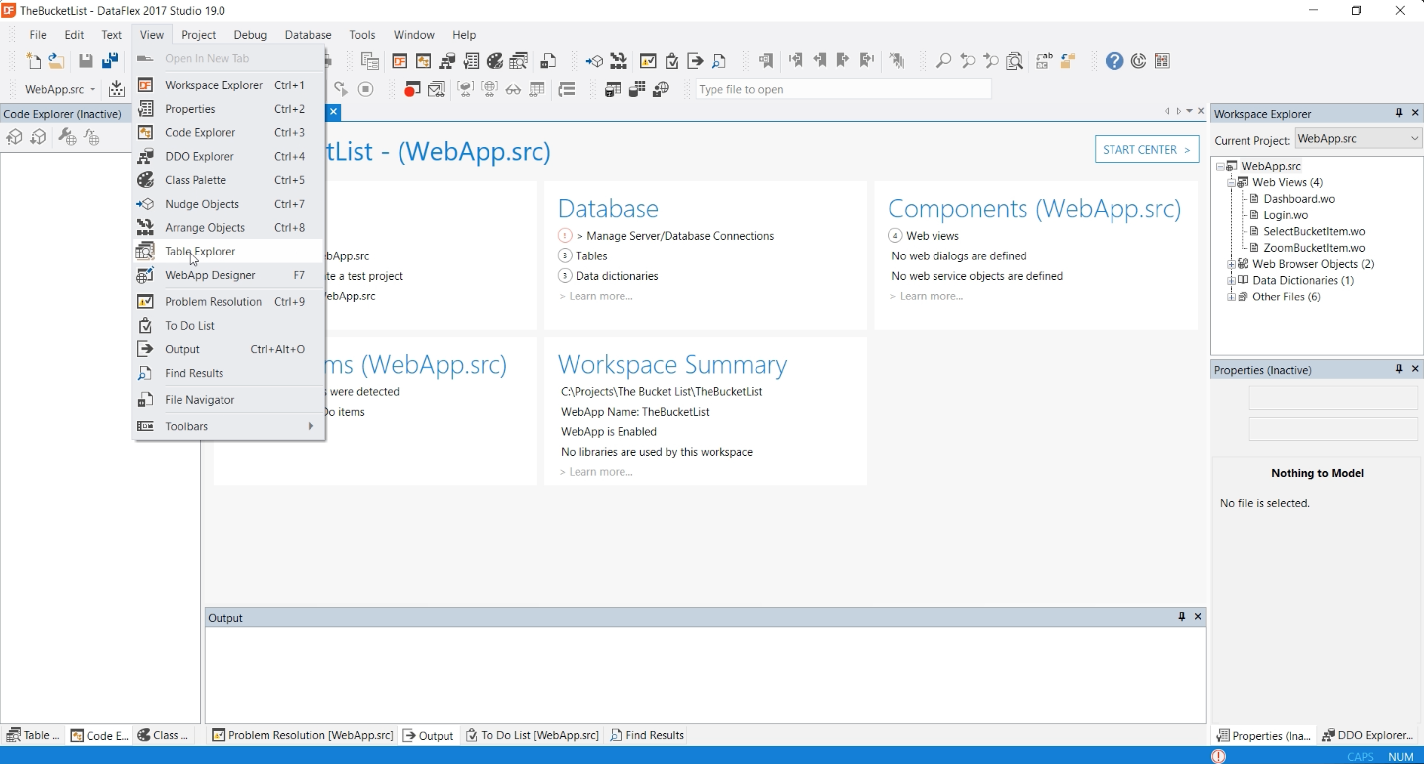 - Open the table explorer using the ‘view’ menu and click on ‘Table Explorer’.