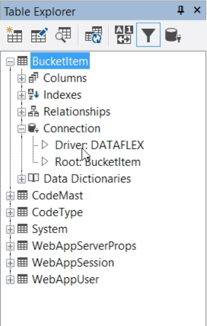 - In this case it is an embedded DataFlex table, so the connections show that the driver is DataFlex.