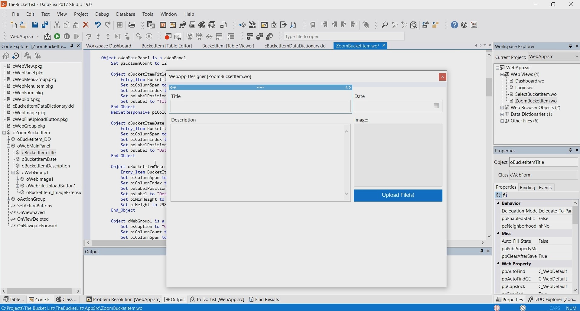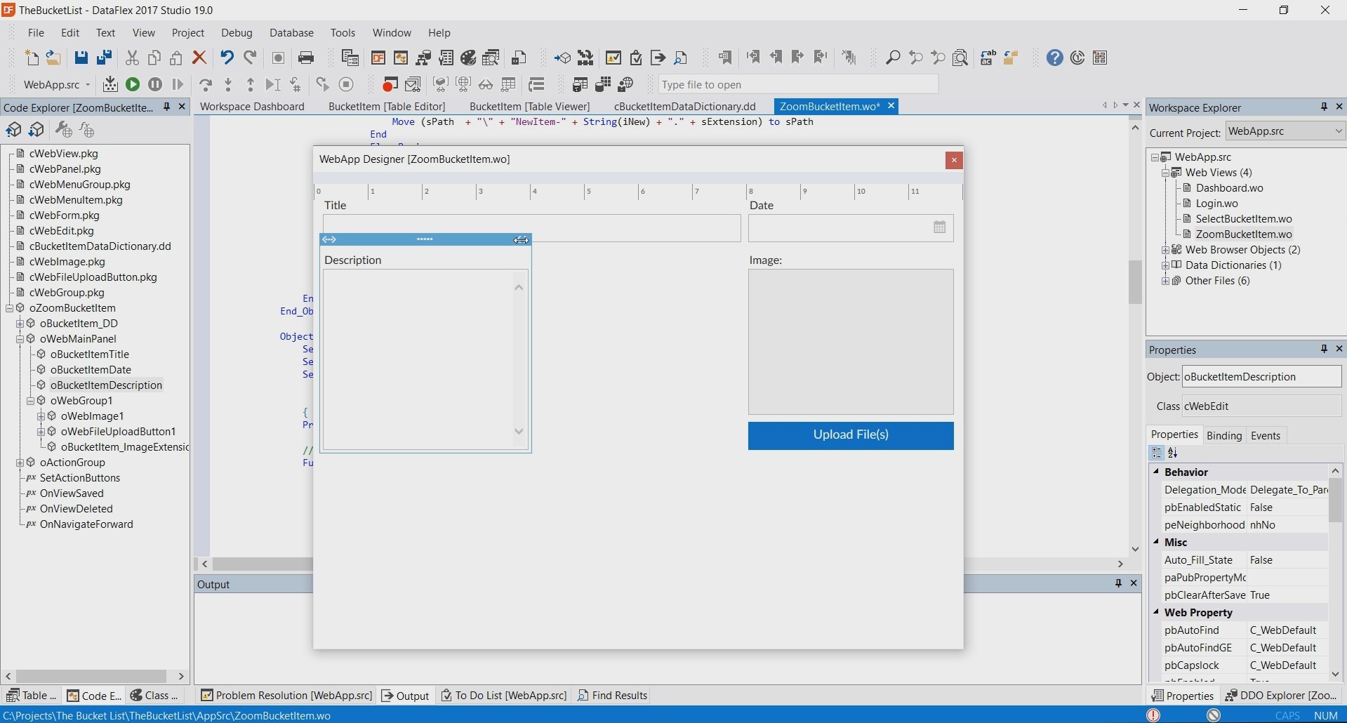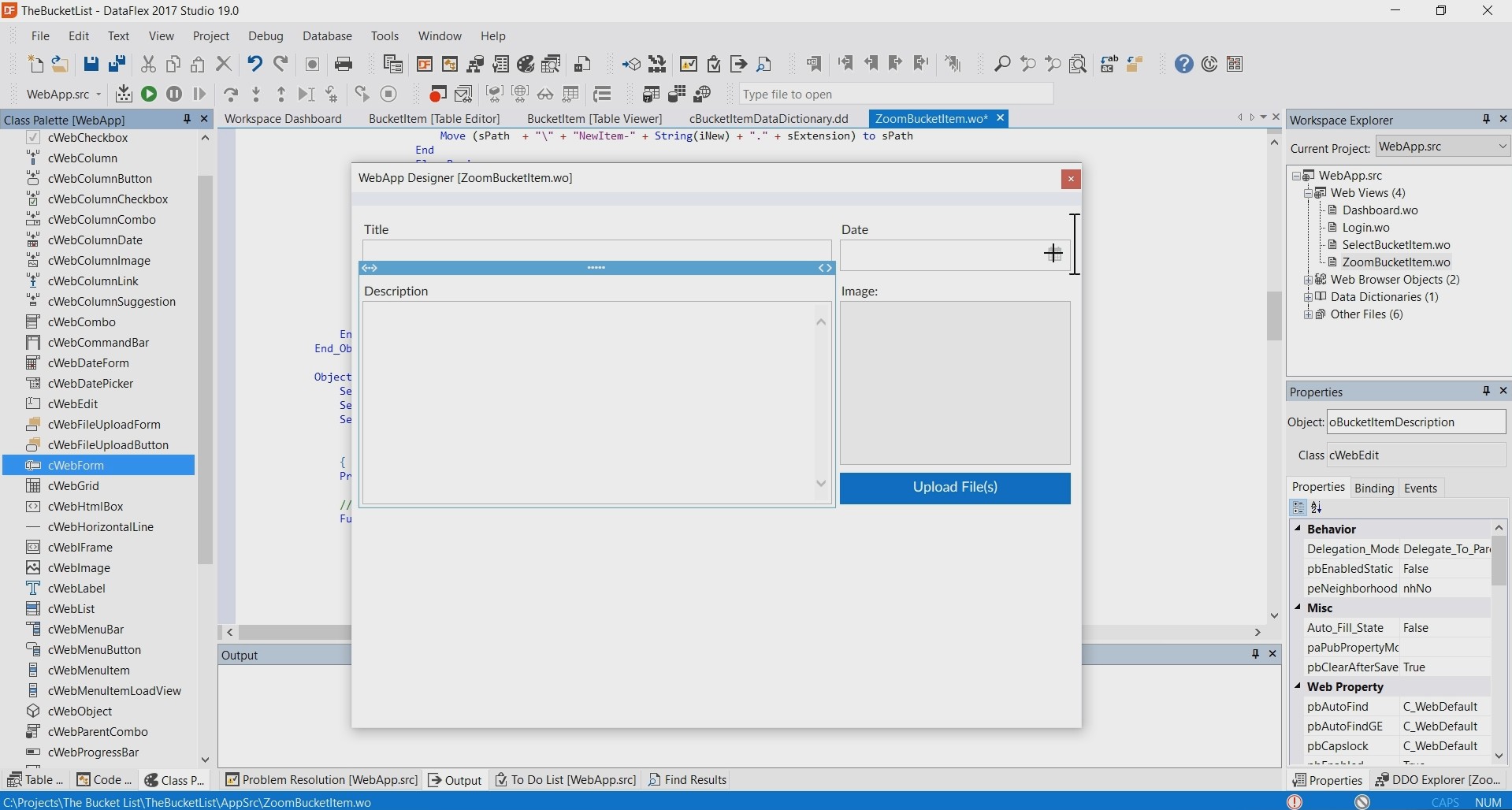In this case this object is based on the ‘cWebForm’ class.