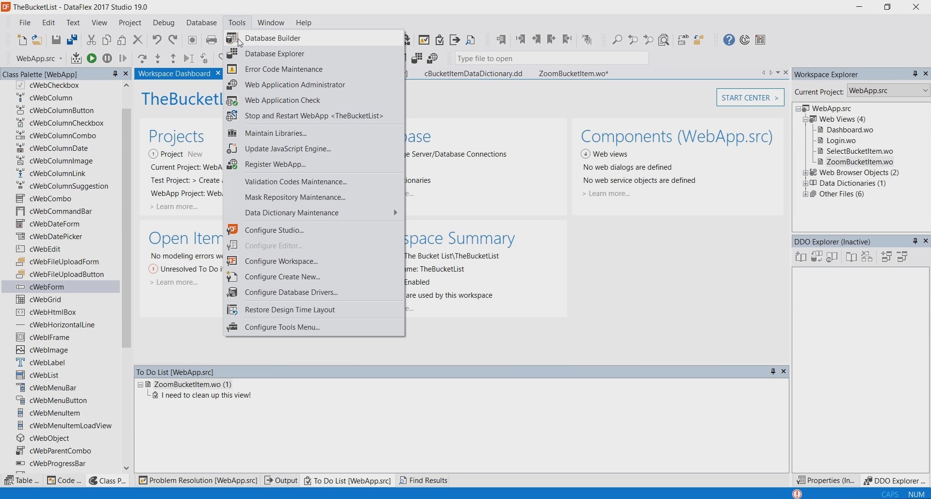 The tools menu shows an overview of all the tools that are installed with DataFlex.