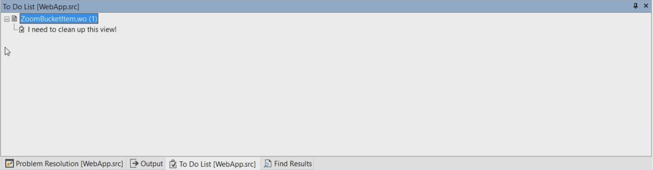 Type ‘//ToDo’ in the source code, or add them by pressing Ctrl+T.