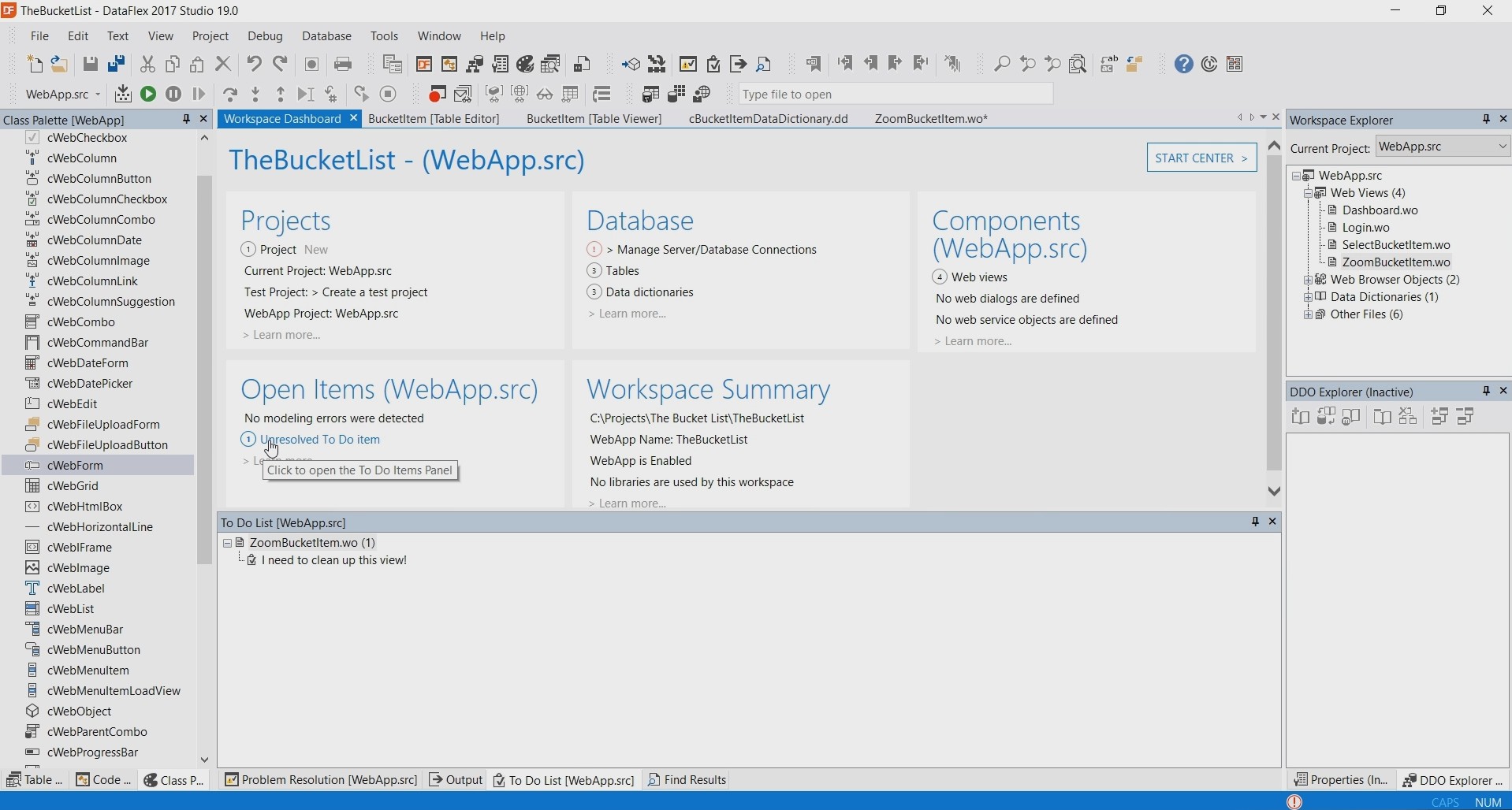 The workspace dashboard will also tell you that there is one unresolved to do item.