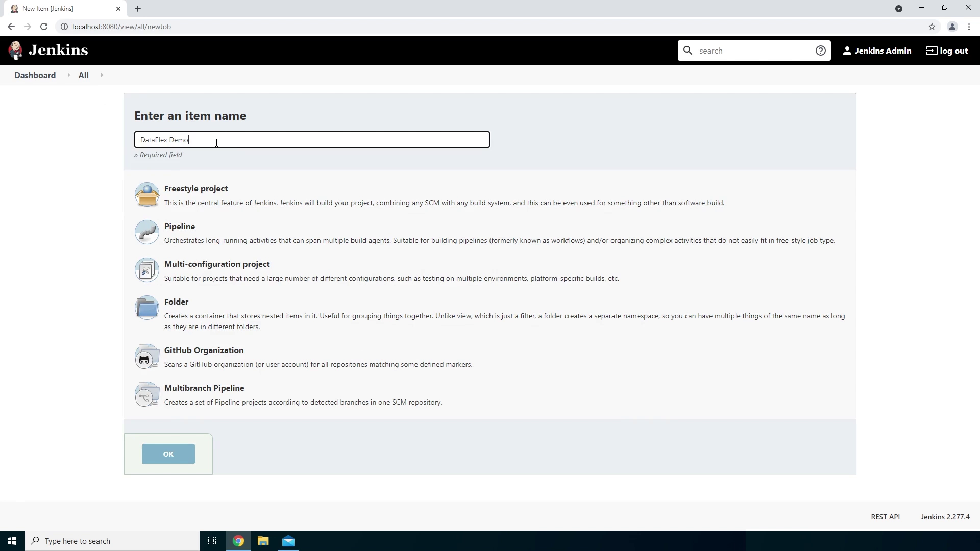 - We will go for a freestyle project which will be used in general for building an application, running tests, building or sending a report or even just running a few commands. So let’s click Ok to create the project.