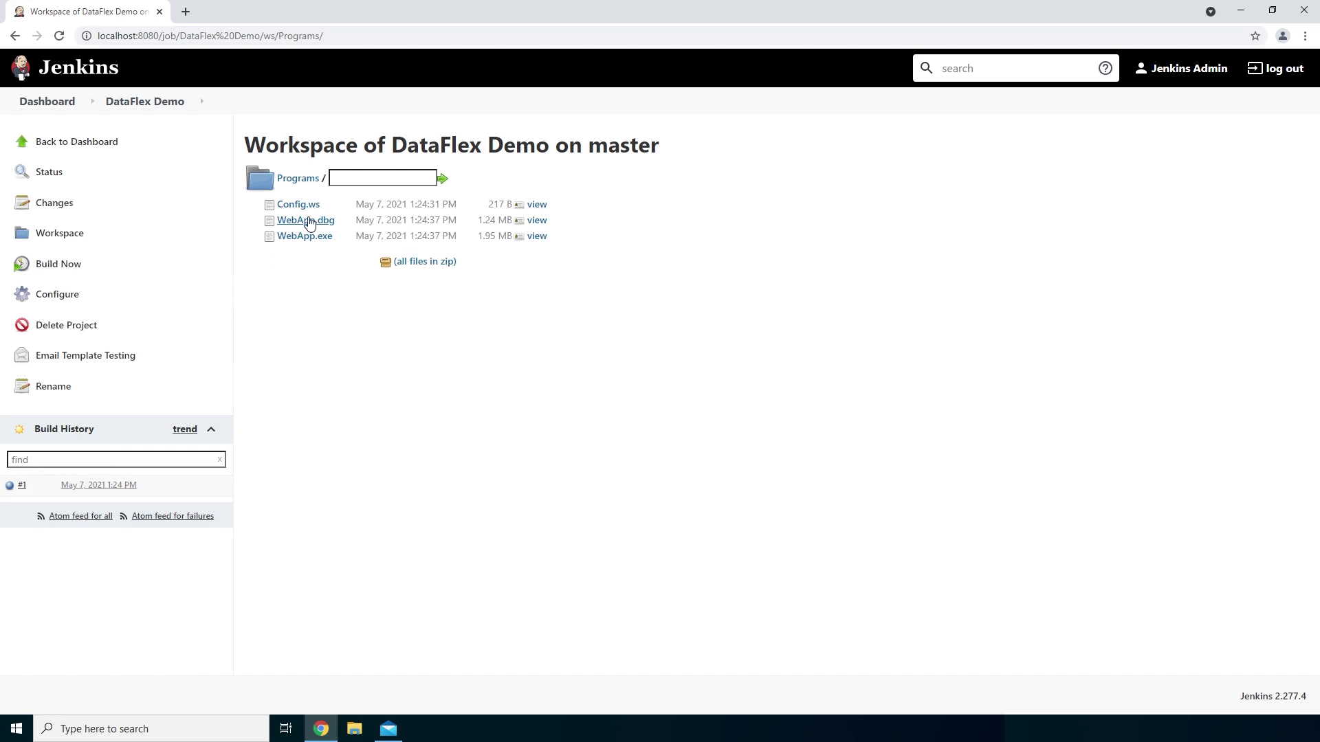We have successfully installed Jenkins on our Windows 64bit system. We created a build project where we compiled a DataFlex workspace using the DataFlex Command Line Compiler and let it send us an email when a build failed and when a build succeeded.