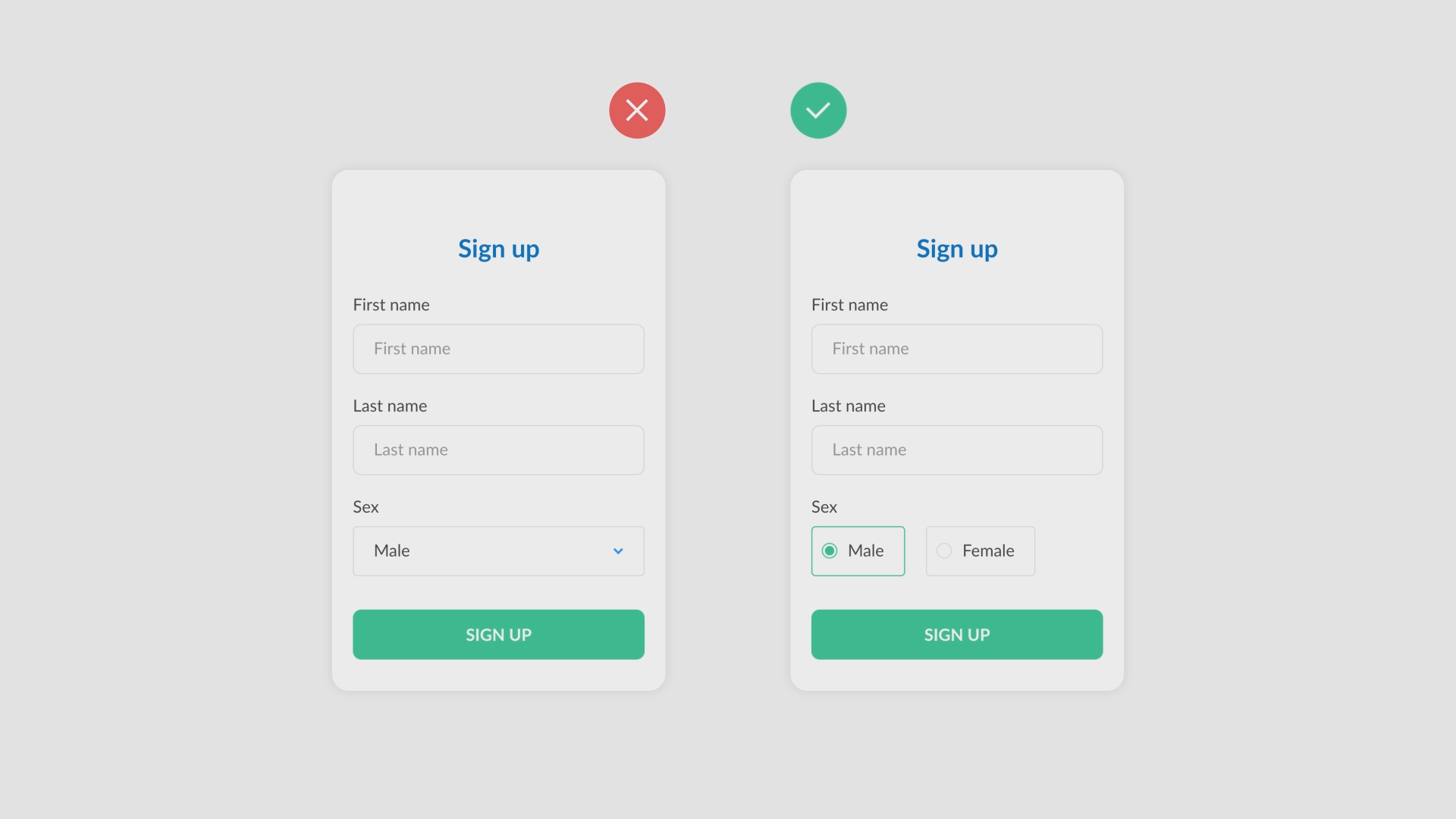 This example shows a sign up form that is using a radio select instead of a normal select. The radio select makes it easier for the user to make the right choice.