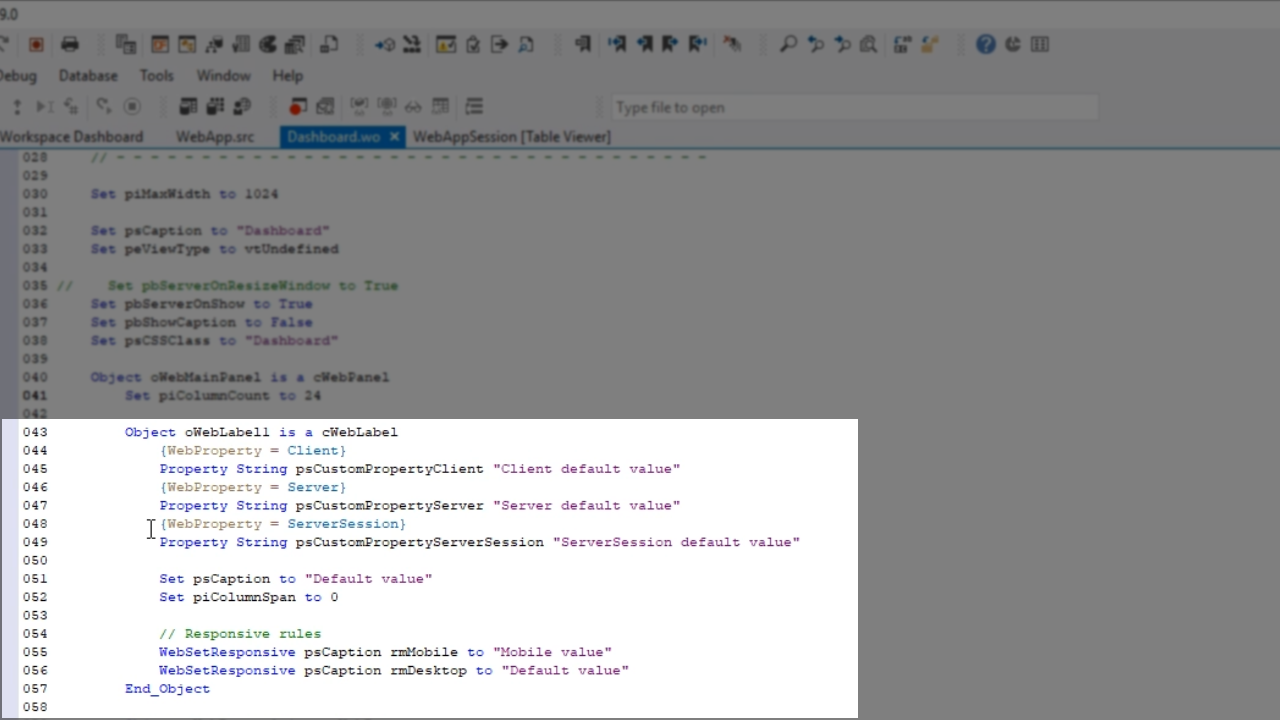 It is not difficult to create a Web Property. Start with creating a regular property, then annotate it with the type of property that needs to be used. A default value also needs to be set. In this example, a property Boolean has been created called ‘pbMyCustomProperty,’ and it has been annotated with {WebProperty = Client}. Its default value has been set to ‘True.’
